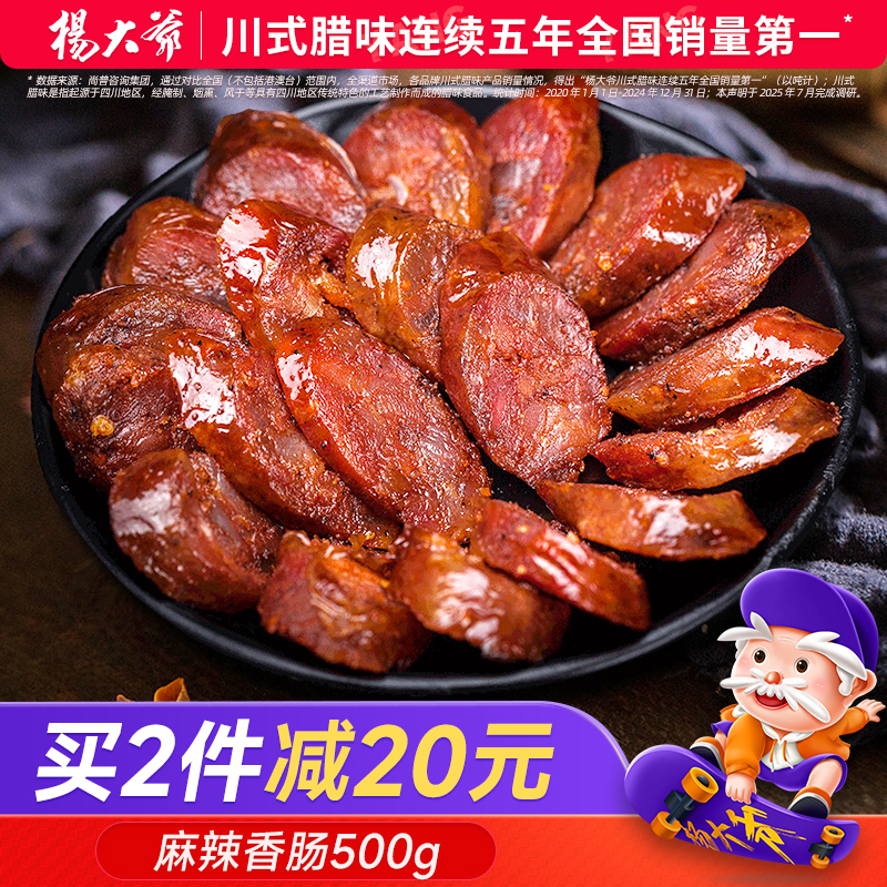 杨大爷麻辣香肠腊肠500克四川特产烟熏肉农家自制川味烤腊肉辣肠