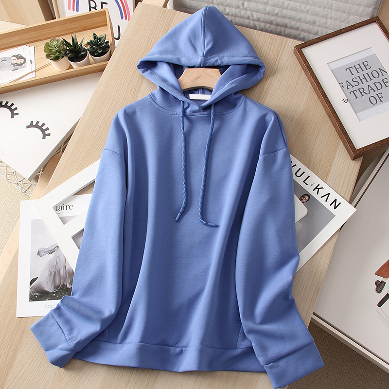 西班牙单~手感相当棒!连帽套头宽松休闲蓝色卫衣上衣女秋冬外套