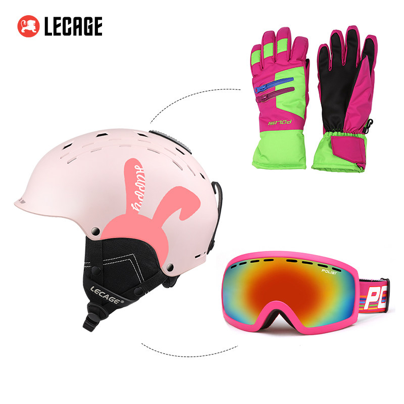 乐凯奇儿童滑雪头盔安全防撞保暖男女童雪盔雪镜一体帽子护具装备