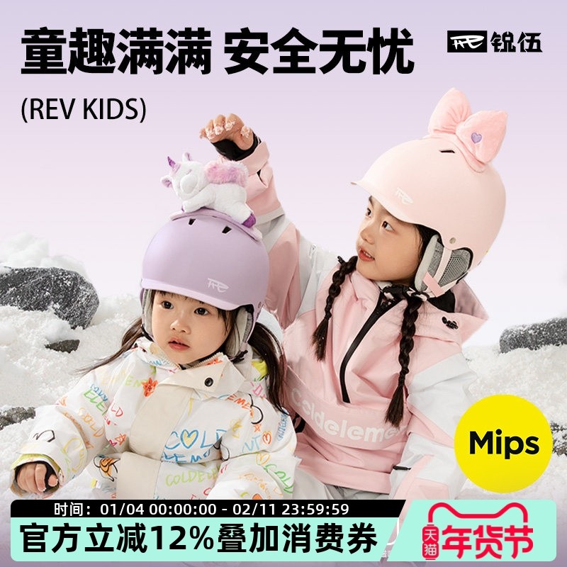 REV锐伍F3滑雪头盔帽亚洲头型MIPS单双板男女装饰耳朵儿童碳纤维