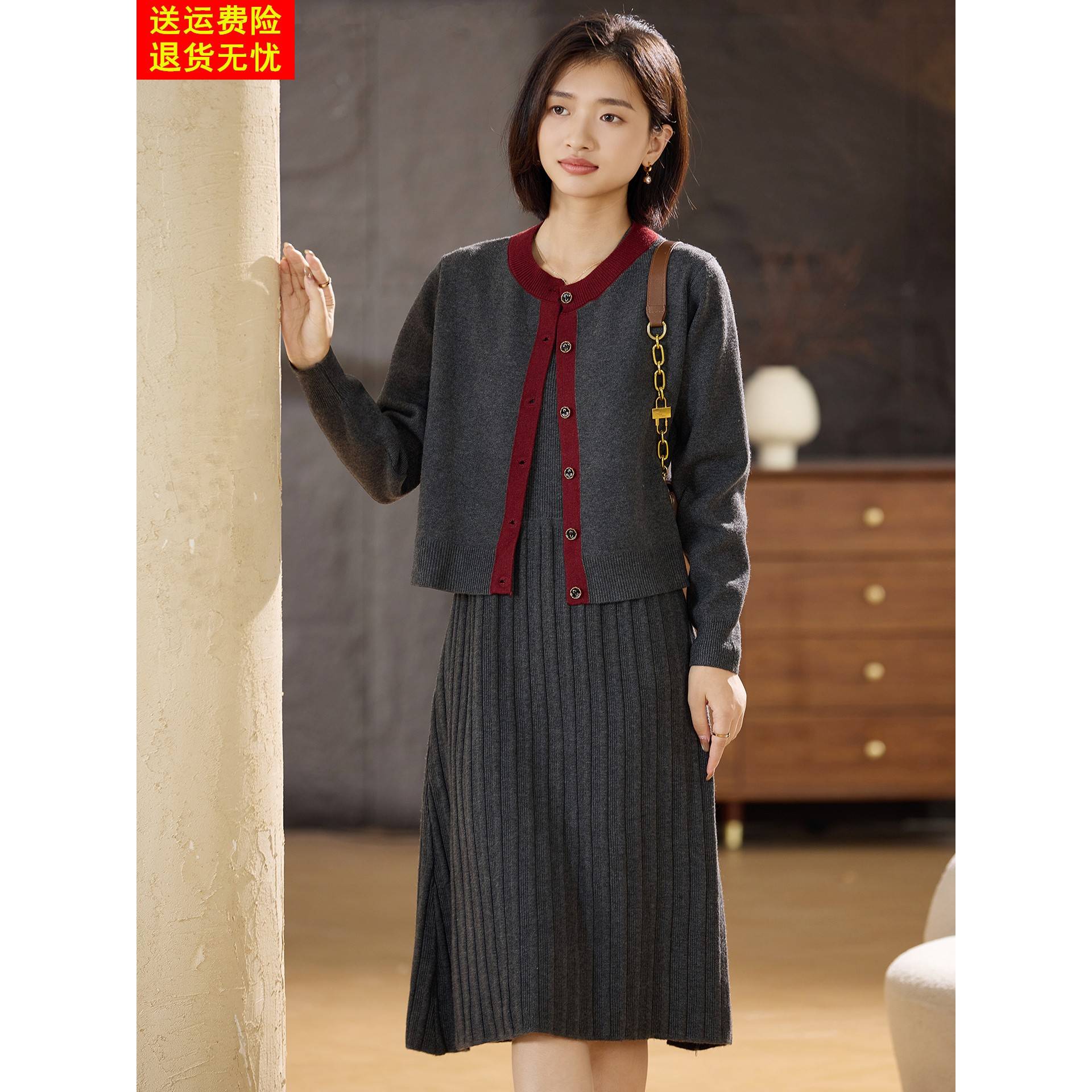 喜卉妈妈秋装针织连衣裙时尚两件套装2025新款中老年女装打底裙子