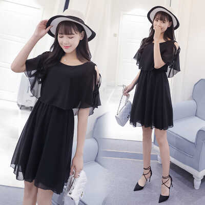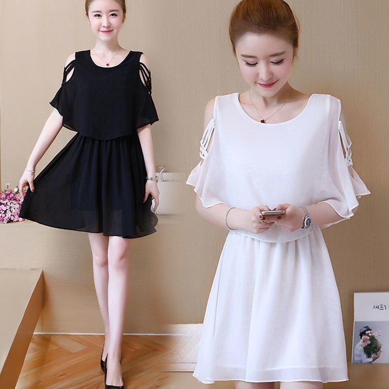 胖mm连衣裙2024新款遮肚雪纺连衣裙露肩短裙宽松大码女装打底裙子