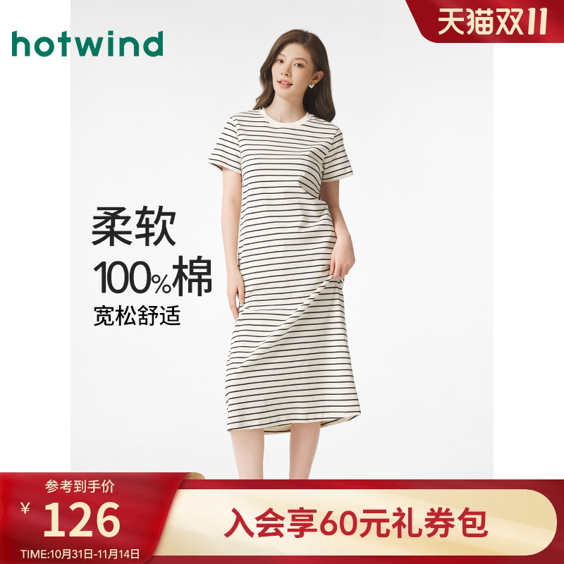 热风T恤连衣裙2025年女装连衣裙圆领长裙条纹短袖内搭打底裙子秋