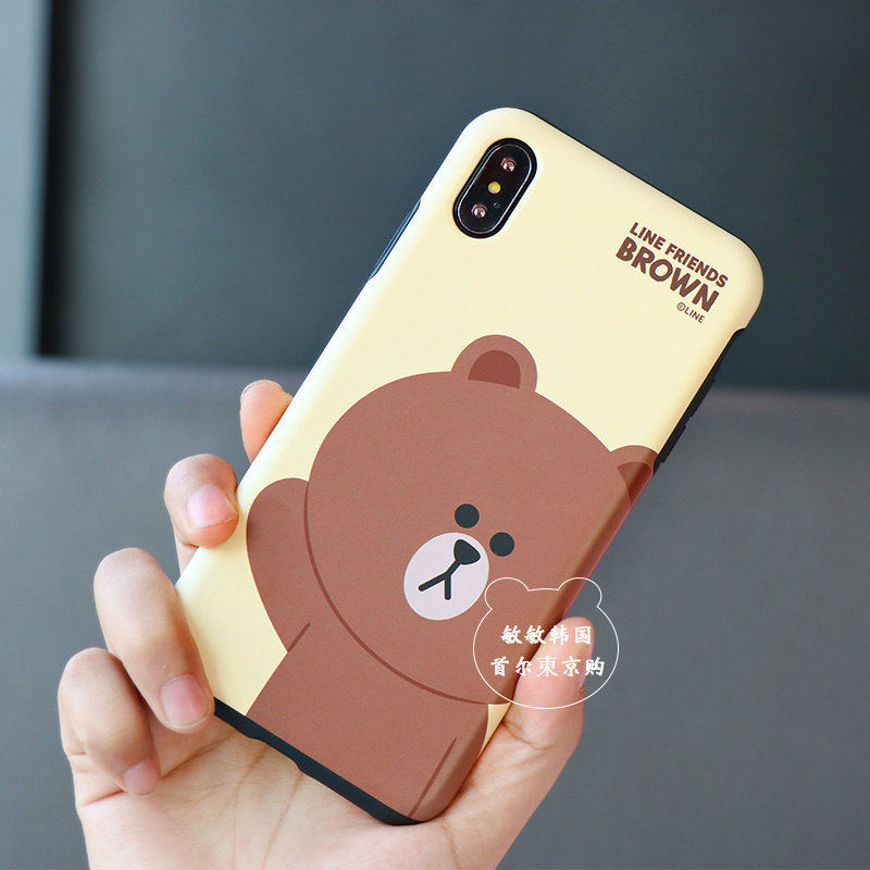 韩国LINE FRIENDS布朗熊适用于iPhoneX手机壳XS防摔7双层8Plus情侣SE2壳