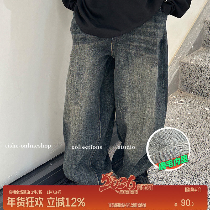男童牛仔裤冬装新款儿童宽松磨毛加厚长裤大童青少年秋冬炸街裤子