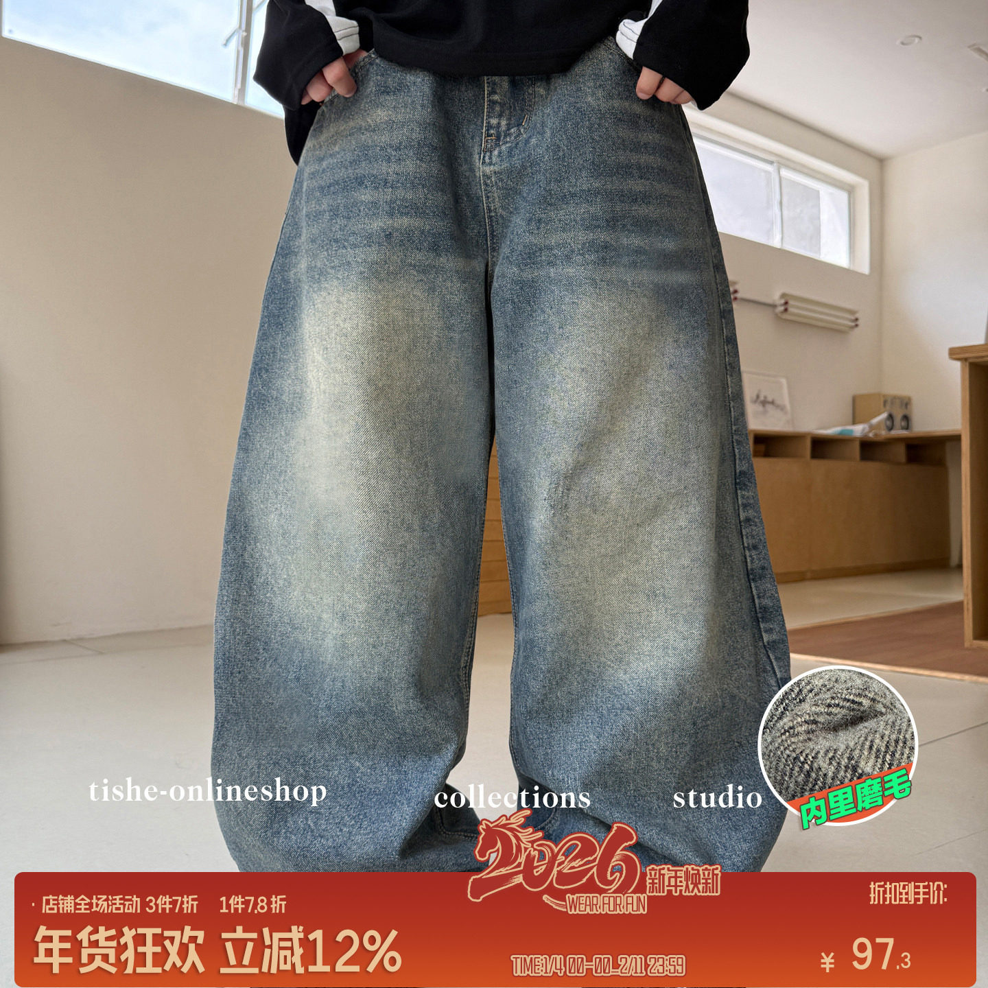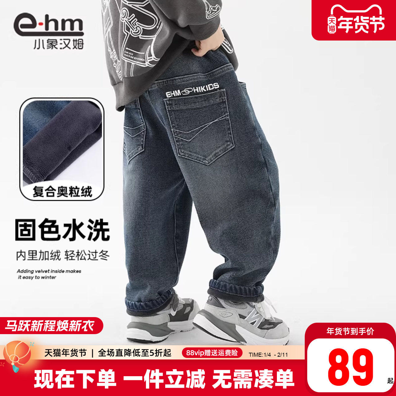 小象汉姆童装男童加绒牛仔裤儿童长裤一体绒2026冬装新款宽松裤子