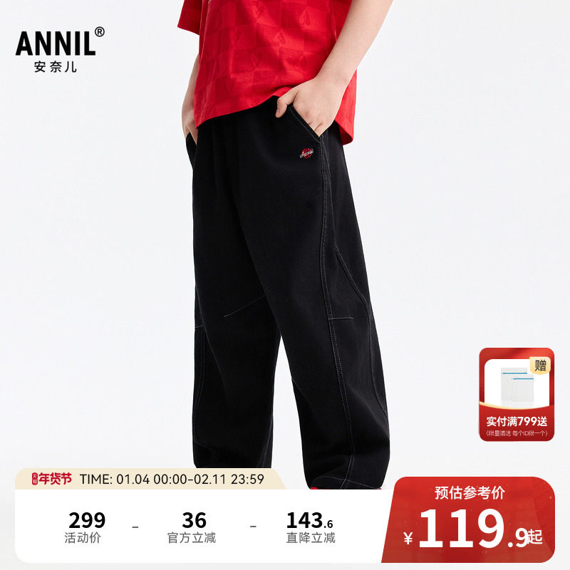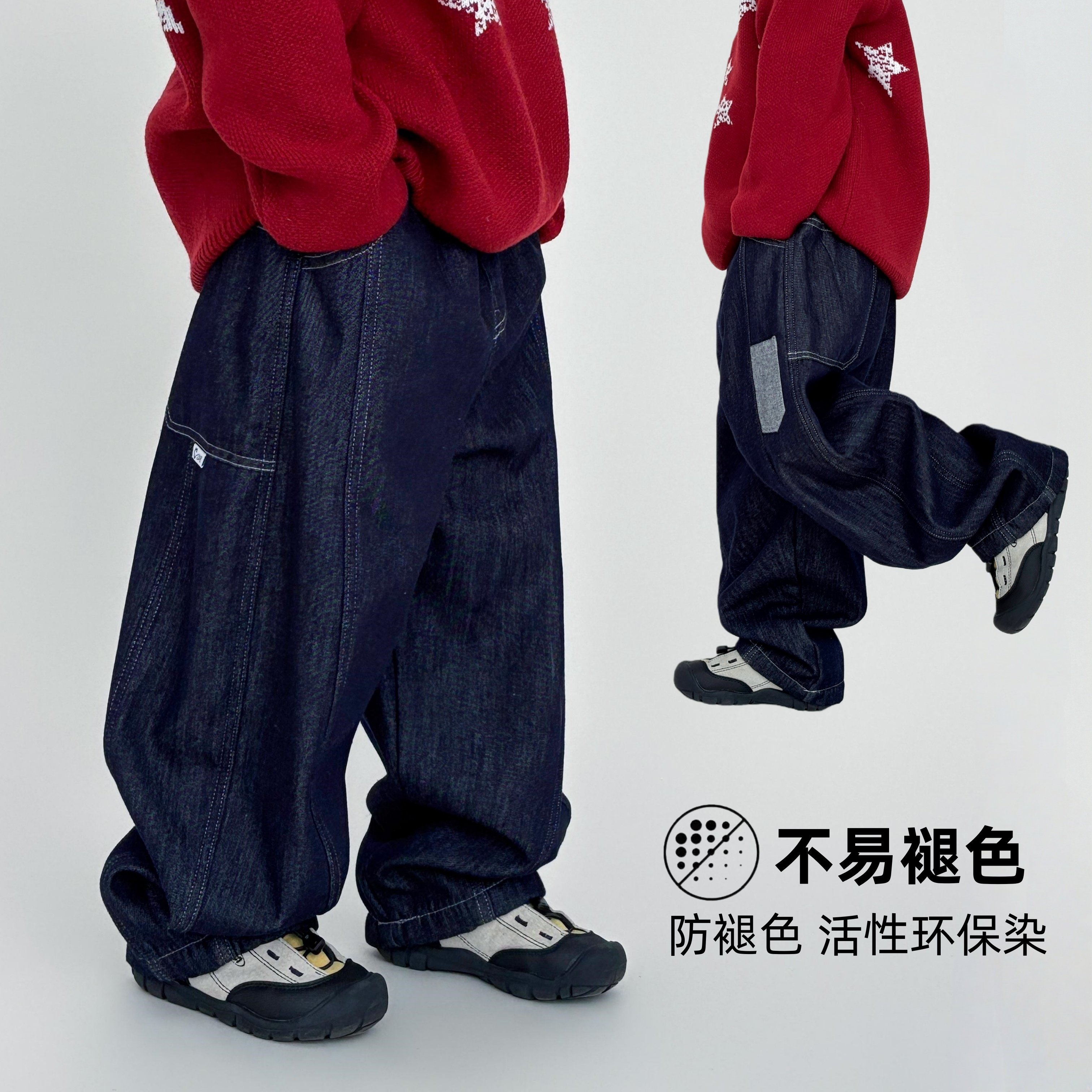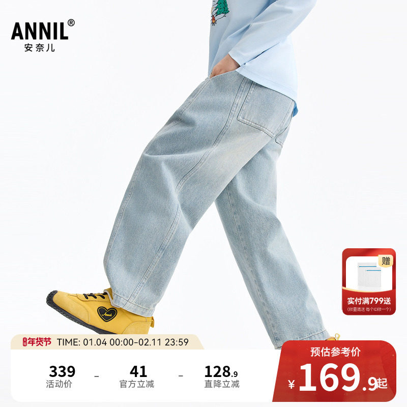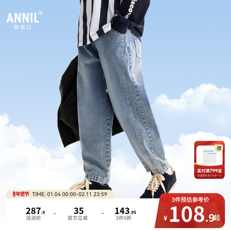 安奈儿童装男童牛仔裤2026春新款宽松锥形裤子时尚全棉透气长裤