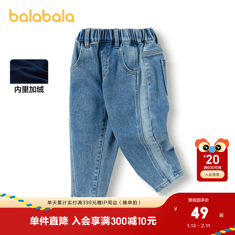 巴拉巴拉童装儿童裤子宽松男童牛仔裤秋冬宝宝松紧腰长裤时尚百搭