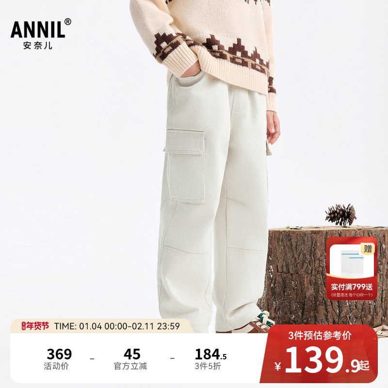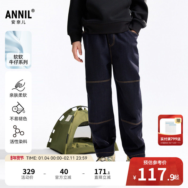 安奈儿童装男童女童裤子2026春新年款仿牛仔透气宽松时尚休闲长裤