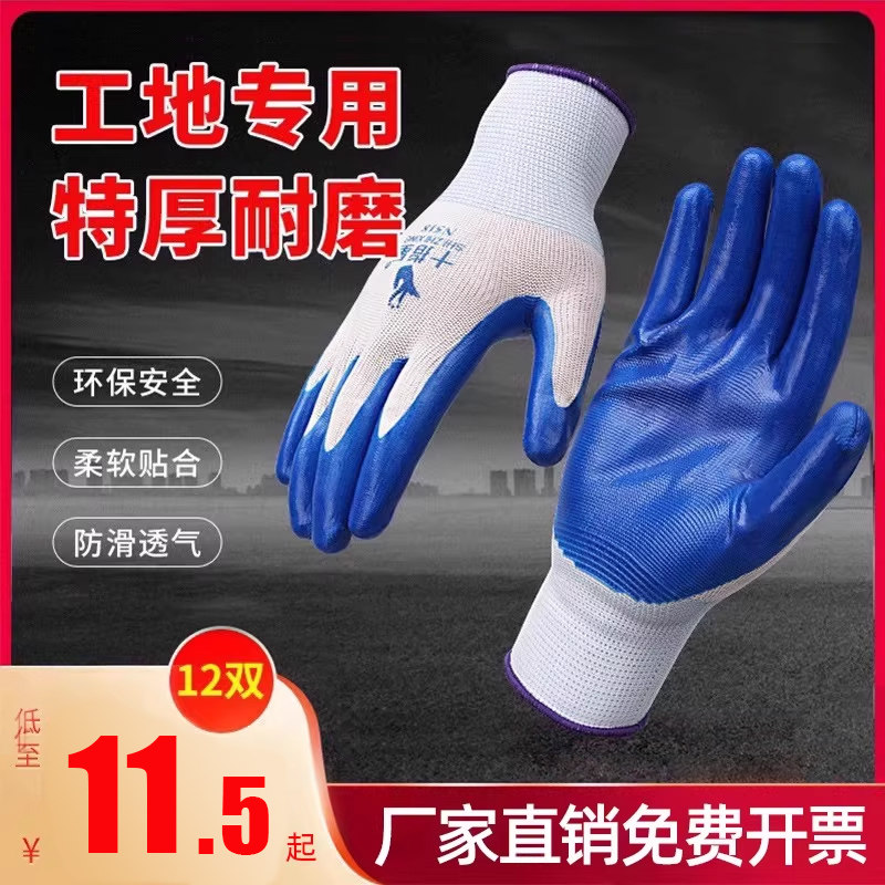 手套劳保耐磨工作橡胶丁腈胶皮防水防滑加厚耐用工厂工地劳工干活