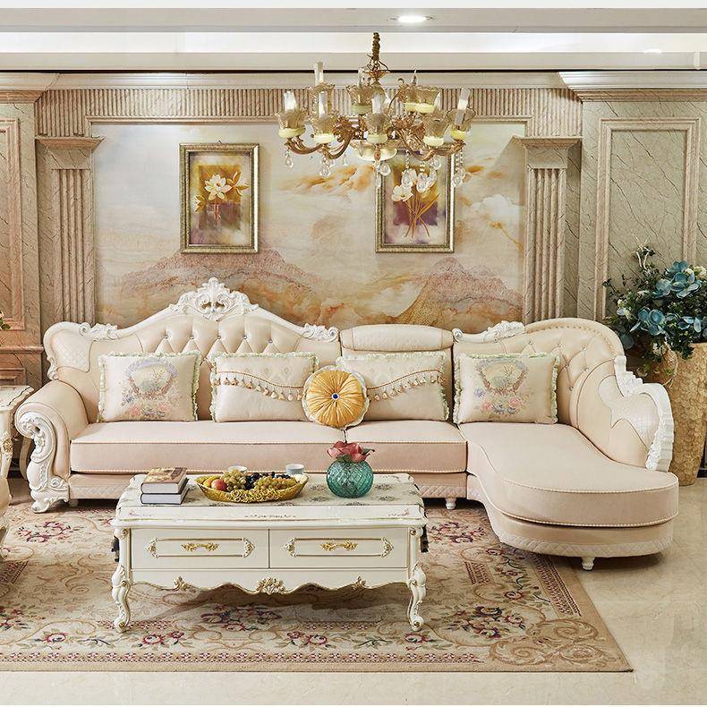 欧式布艺沙发组合转角L 贵妃客厅奢华大小户型雕花实木宫廷简欧风