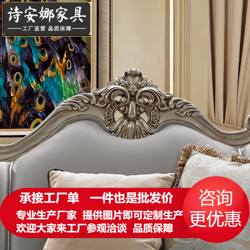 欧式沙发组合小户型客厅简欧皮艺沙发新古典轻奢美式实木雕花家具