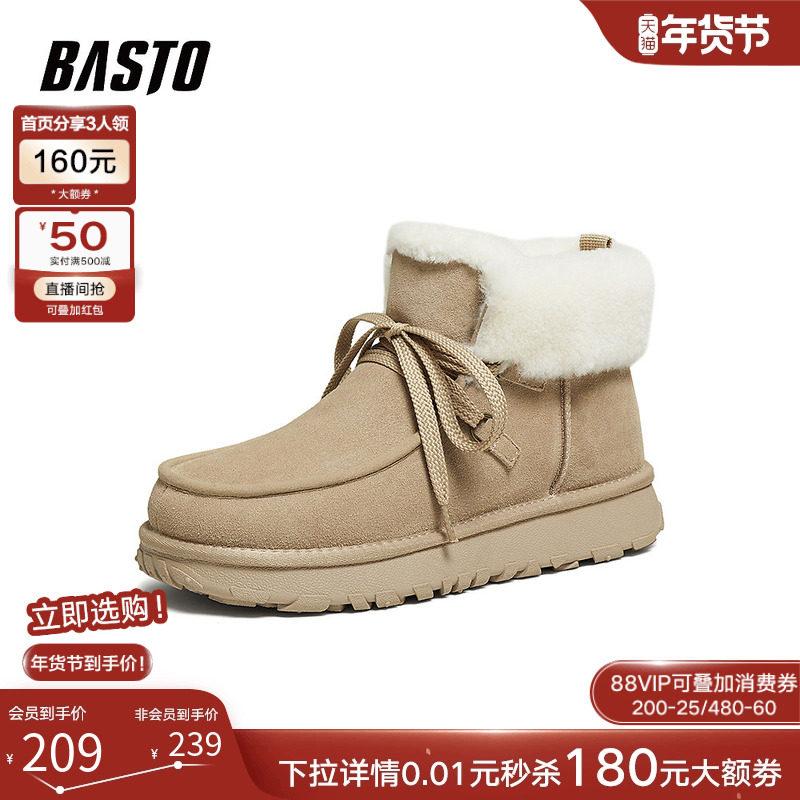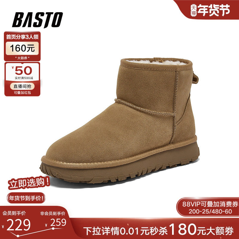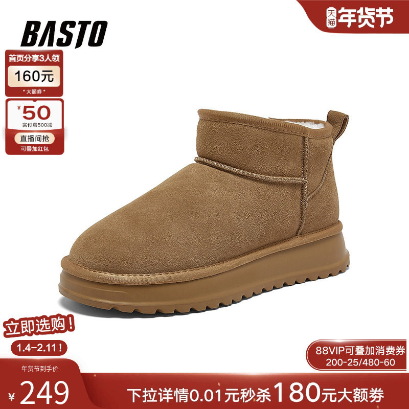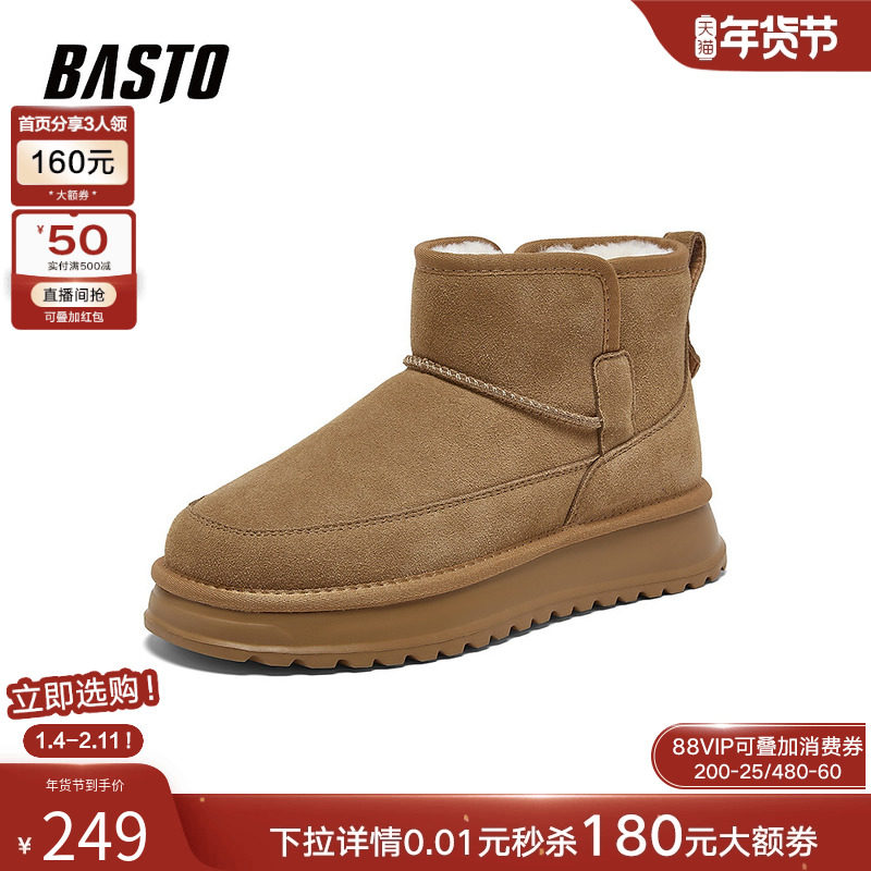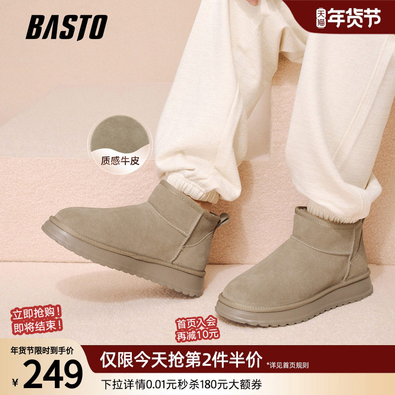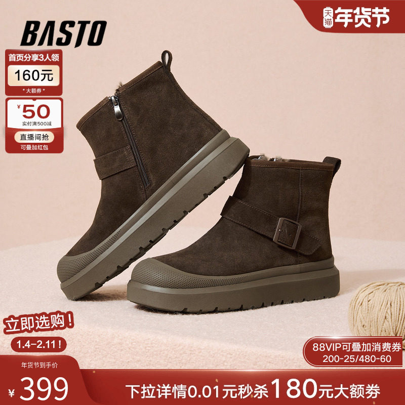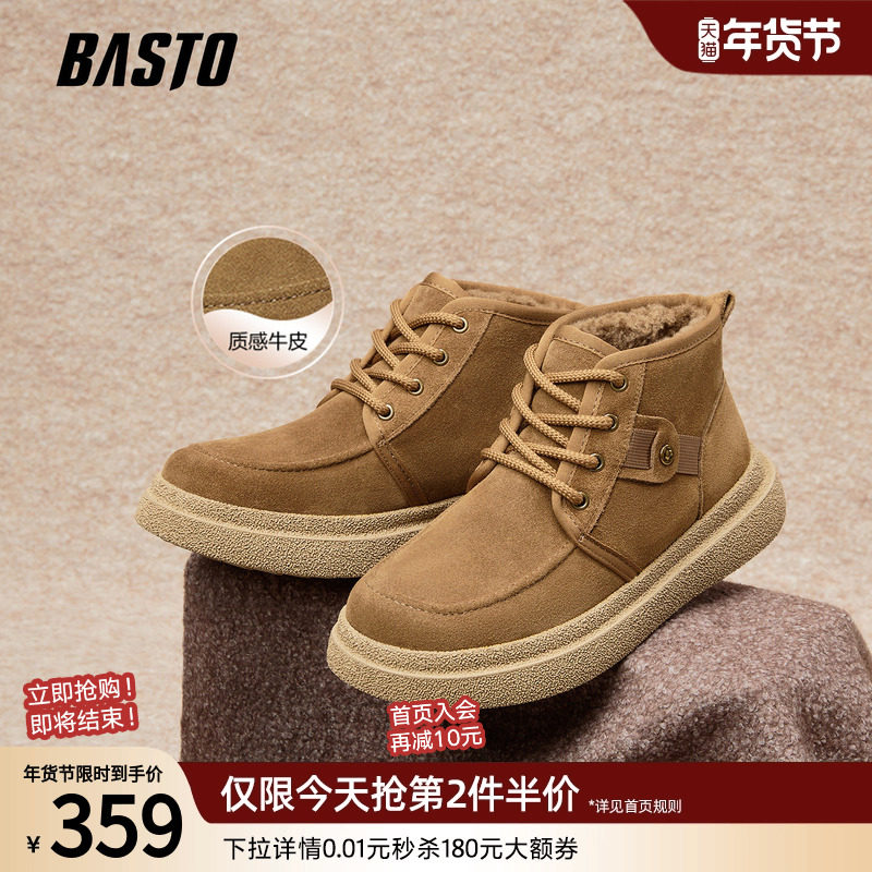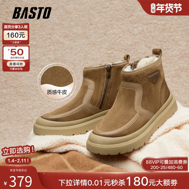 百思图2025冬季新款商场同款雪地靴休闲加绒保暖男短靴FFM10DD5
