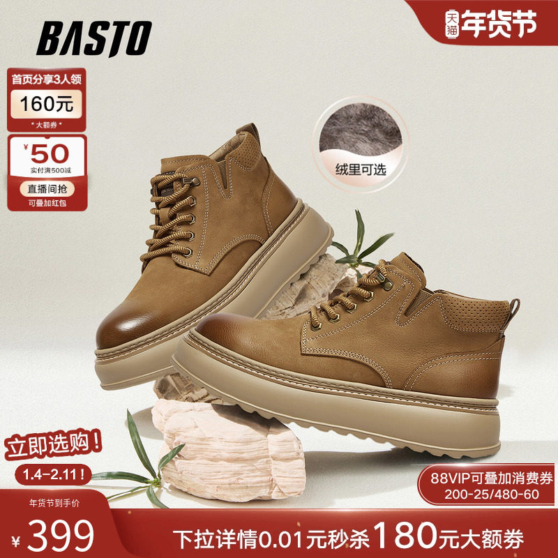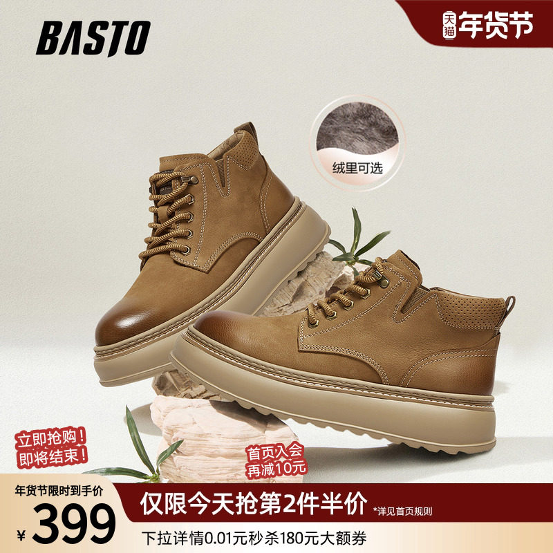 百思图2025冬季新款工装靴时尚简约户外运动厚底男短靴L8802DD5