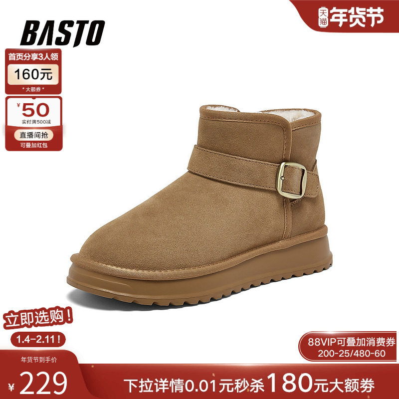 百思图2025冬季新款雪地靴时尚简约户外休闲男短靴25001DD5
