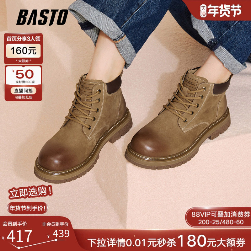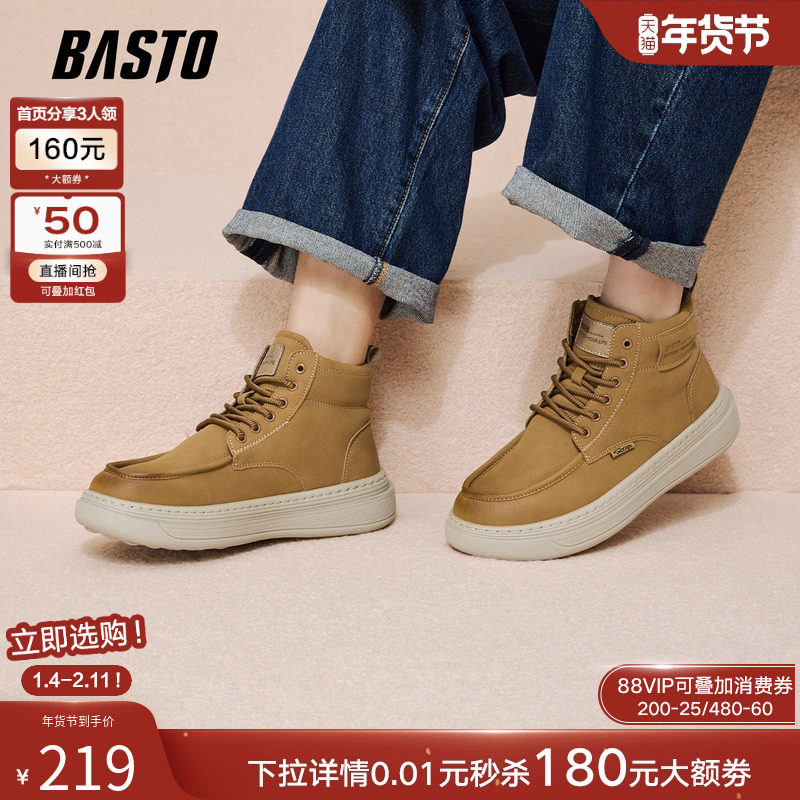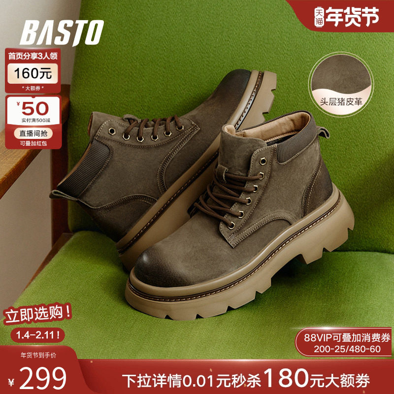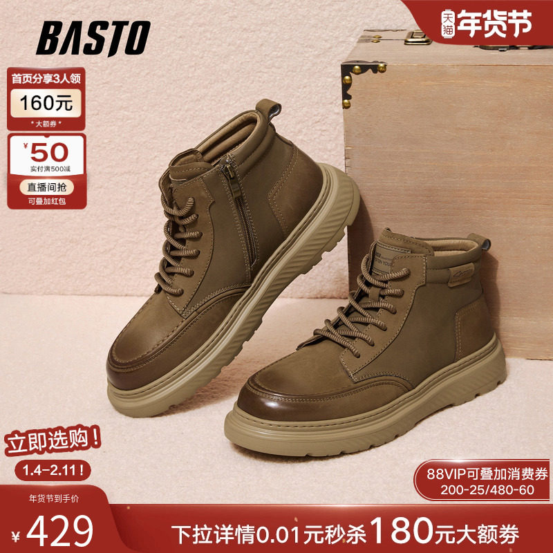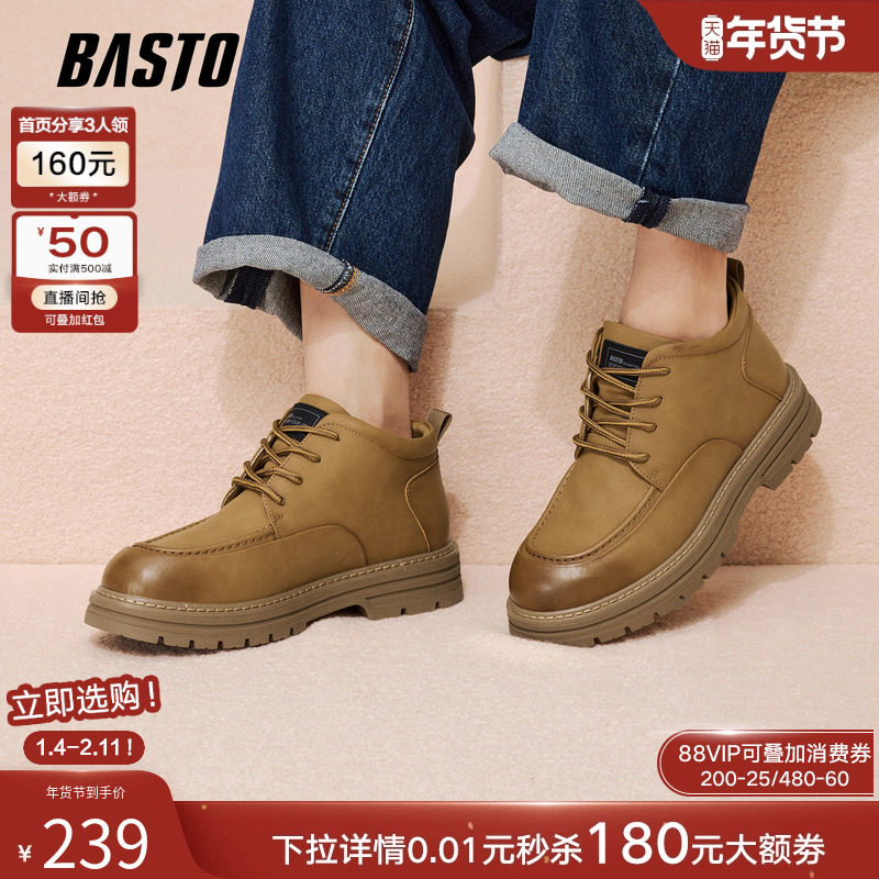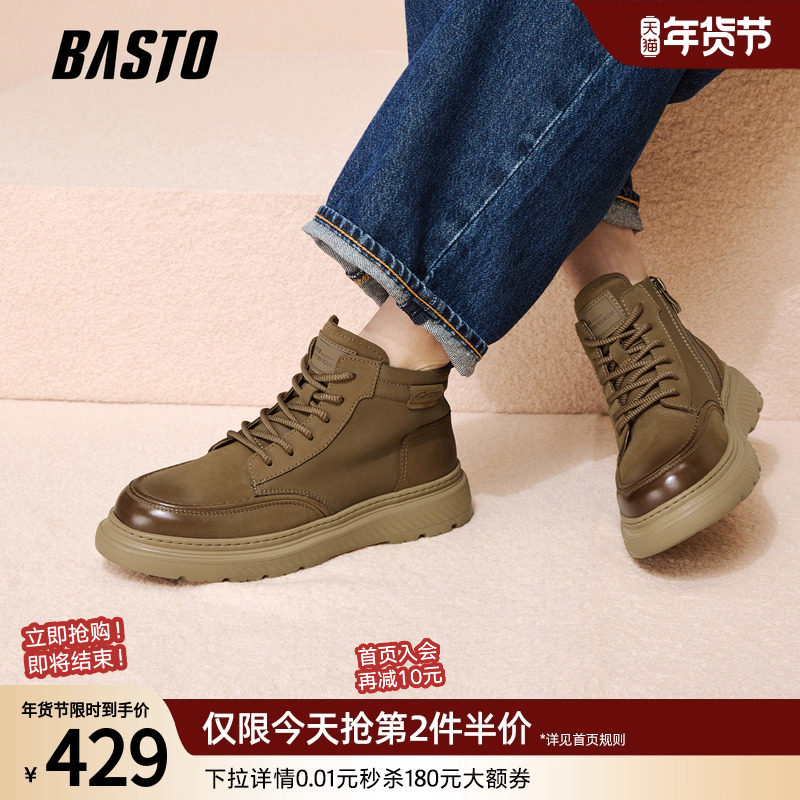百思图25冬季新款厚底高帮工装马丁靴时尚潮流运动男短靴51337DD5