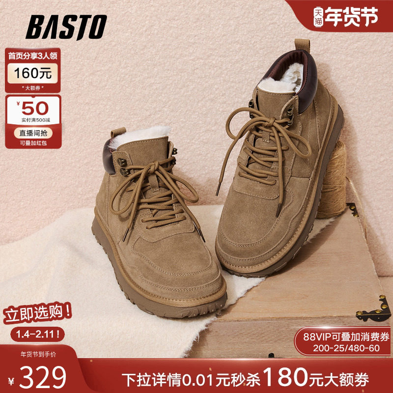 百思图25冬季商场新款加绒保暖工装马丁靴东北户外棉鞋运动男短靴