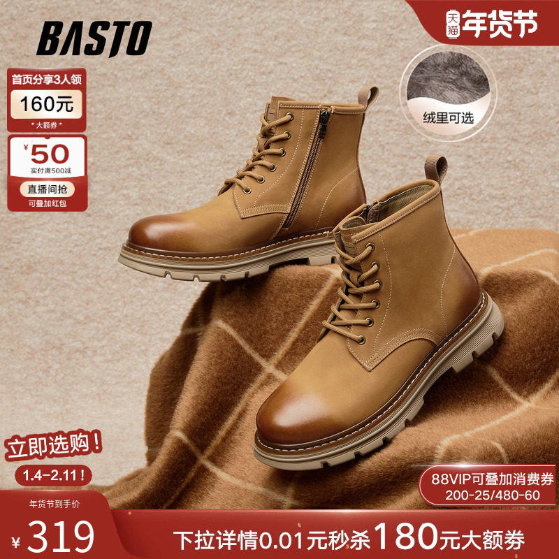 百思图2025冬季商场新款加绒保暖马丁靴户外工装靴男短靴WF519DD5