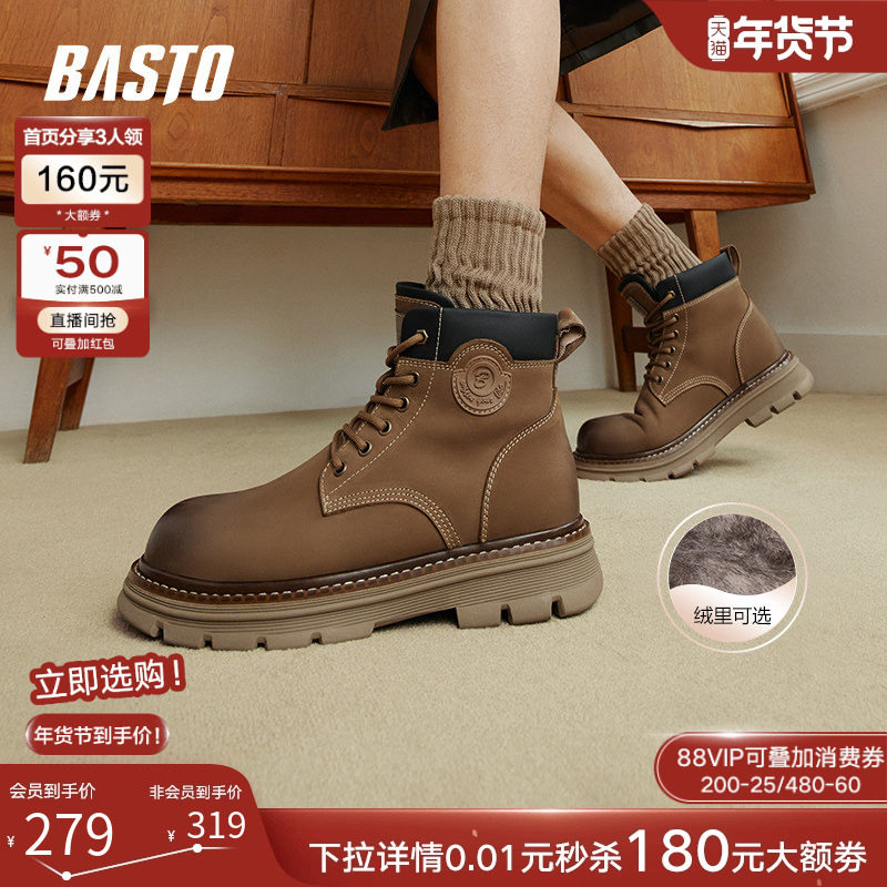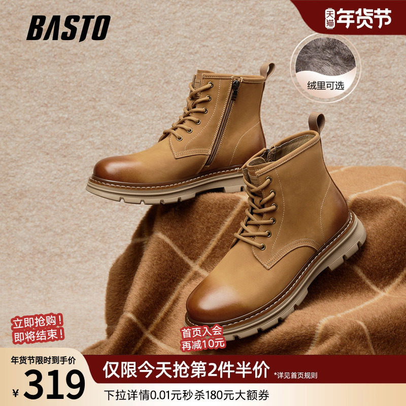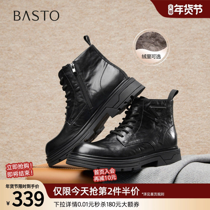 百思图25冬季商场新款东北加绒棉鞋厚底户外工装马丁靴时尚男短靴