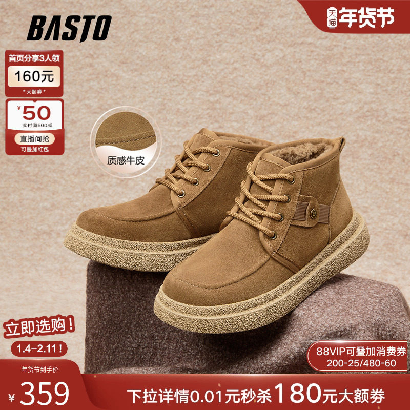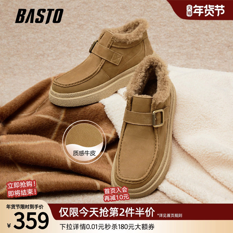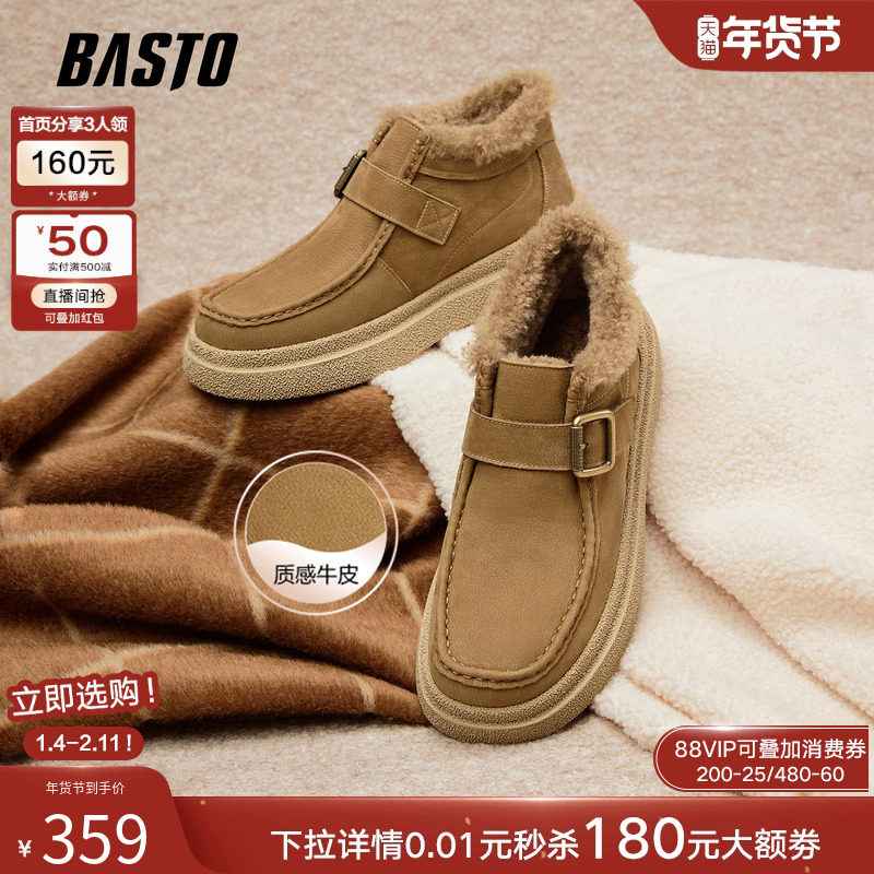 百思图2025冬季商场新款加绒雪地靴时尚保暖东北户外棉鞋男短靴