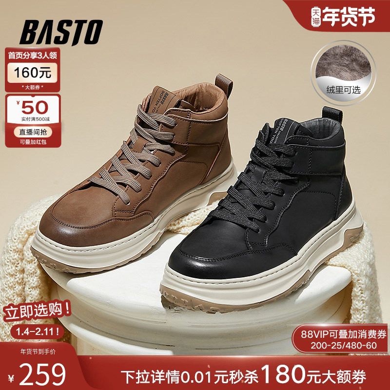 百思图冬季商场同款时尚加绒运动高帮马丁靴厚底男短靴30888DD3