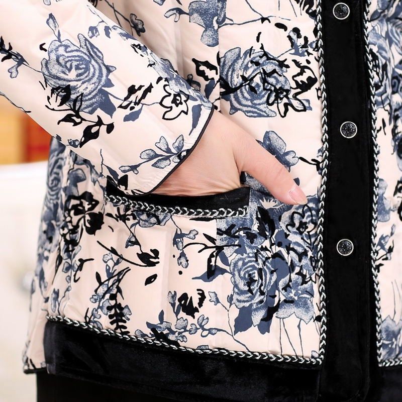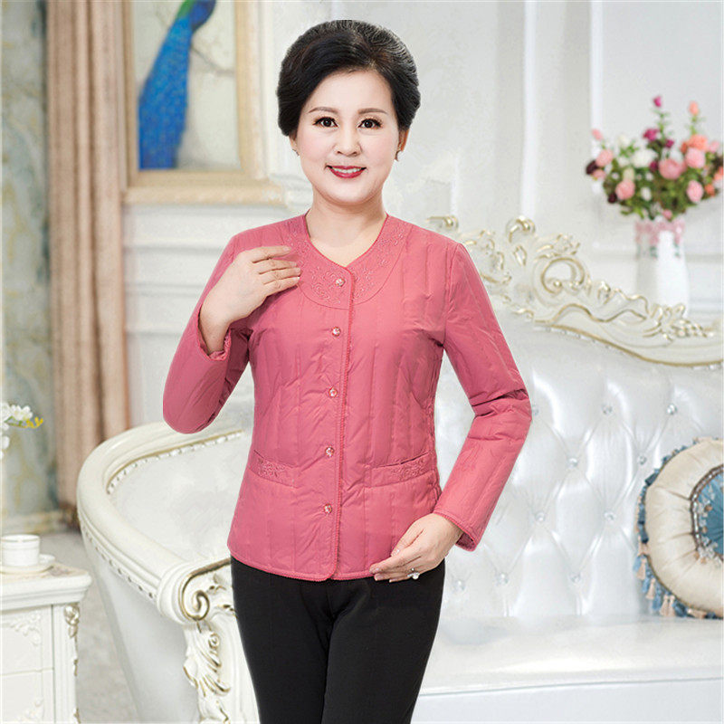 雅鹿中老年开衫保暖内衣女士加绒加厚羽绒填充保暖衣妈妈防寒外套