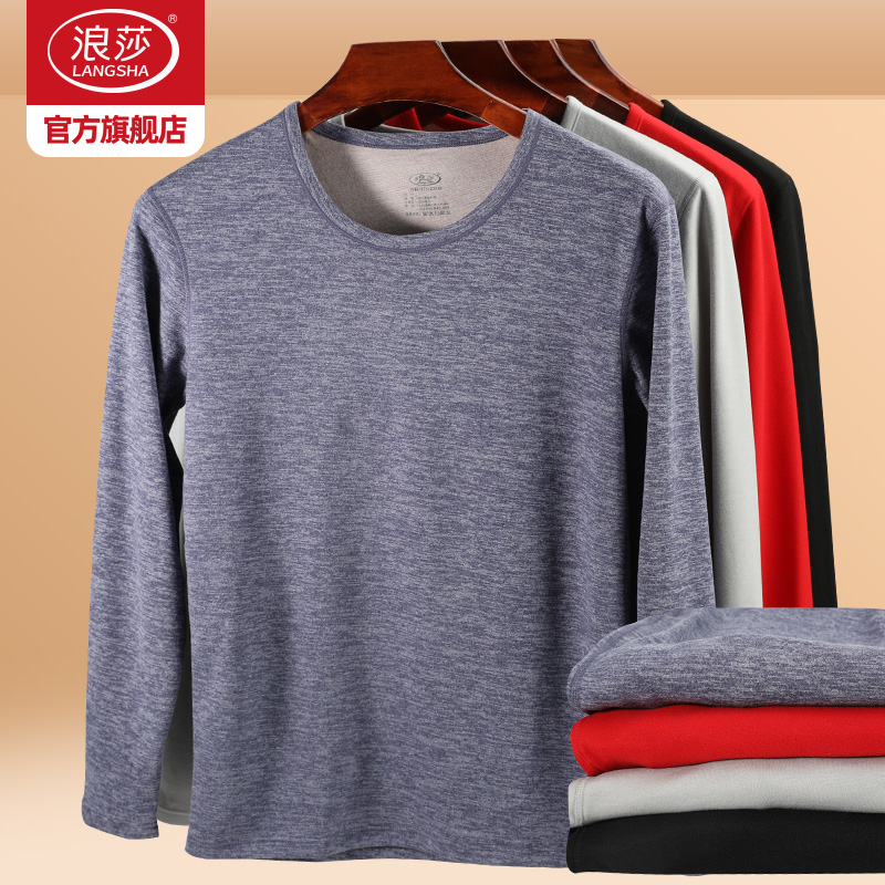 浪莎羽绒蚕丝磨毛男士加厚保暖内衣套装青年中老年秋衣裤打底衫冬