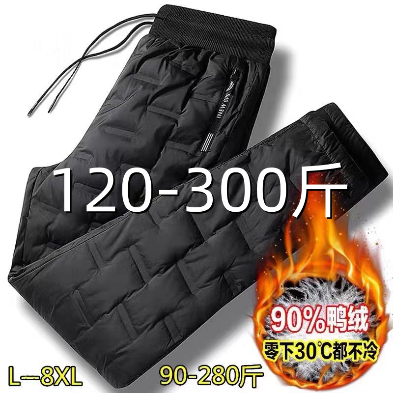 大码男士羽绒裤中老年人鸭绒高腰深档棉裤冬季肥佬外穿抗寒保暖裤