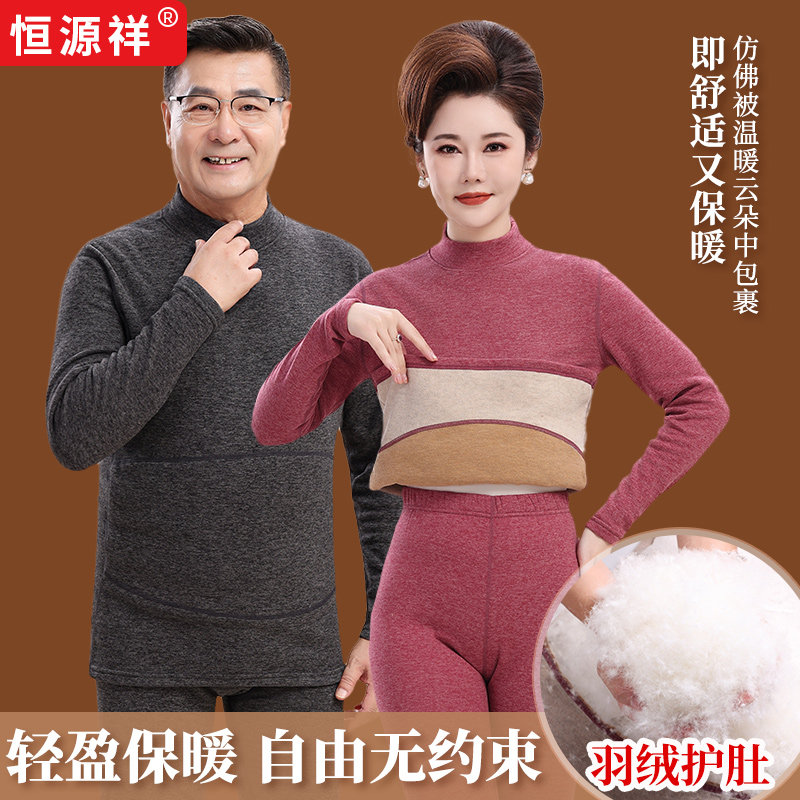 恒源祥男士加绒加厚保暖内衣羽绒填充防寒女中老年保暖套冬季内穿