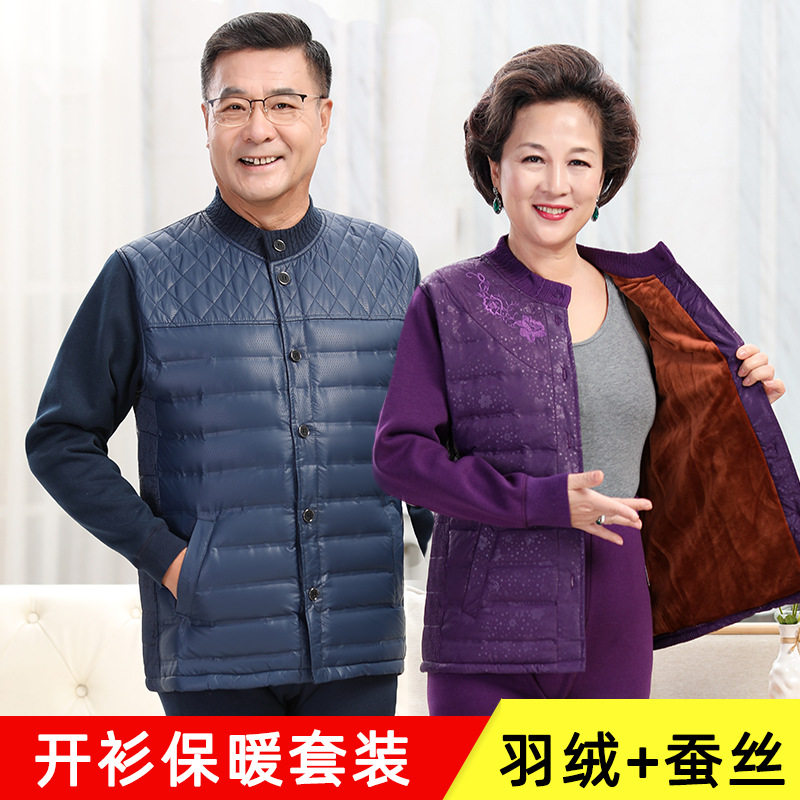 中老年人羽绒保暖内衣男士加绒加厚套装女爸爸妈妈奶奶开衫防寒冬