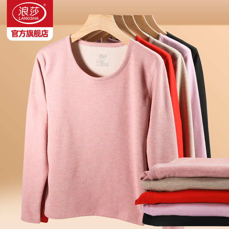 浪莎羽绒蚕丝磨毛加厚保暖内衣套装女士青年中老年秋衣裤打底衫冬