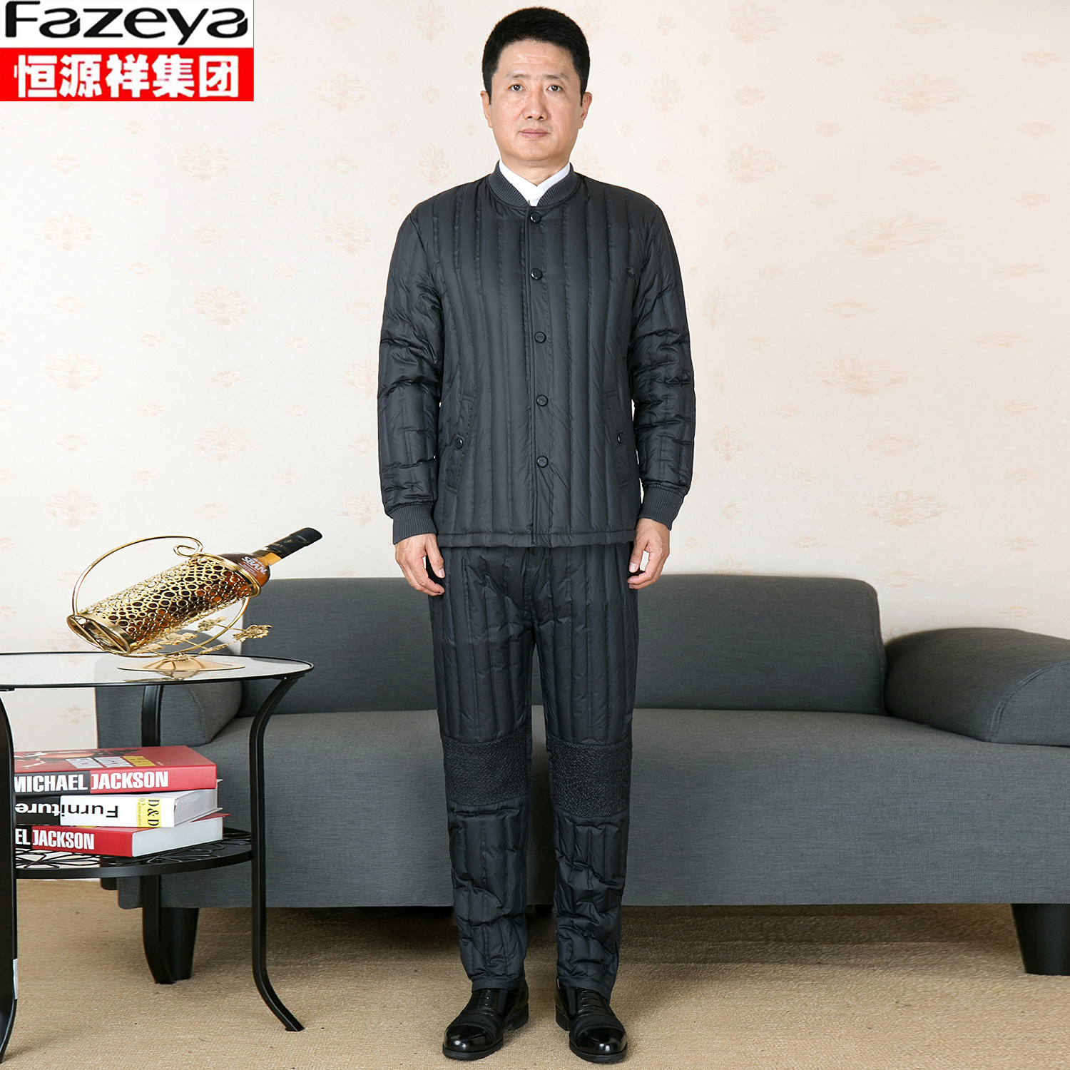 恒源祥集团彩羊羽绒内胆套装男新款中老年人男保暖大码内衣爸爸装