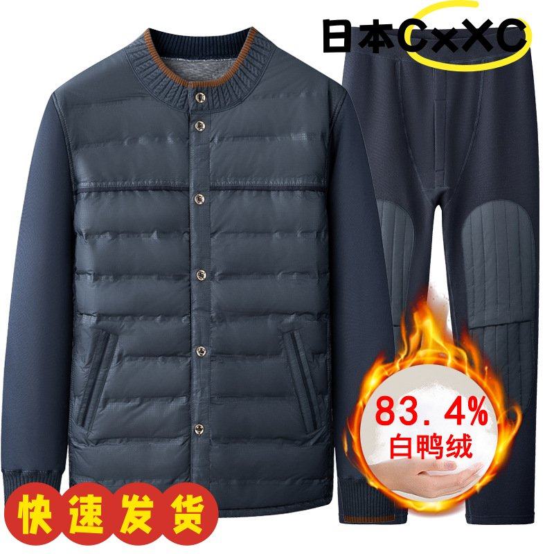 中老年人羽绒保暖内衣男士爷爷加厚开衫外套爸爸白鸭绒两件套AD02