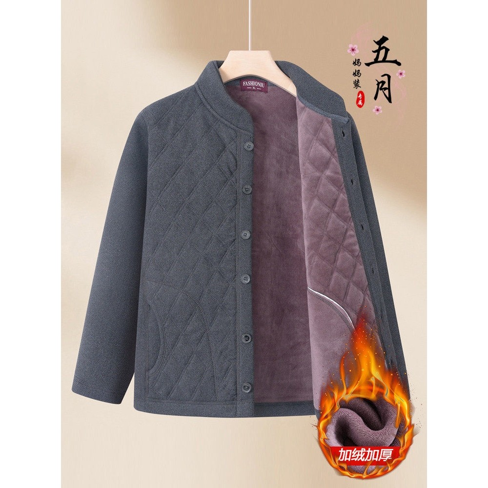 雅鹿妈妈开衫保暖内衣女加绒加厚羽绒填充保暖衣中老年棉服棉衣冬