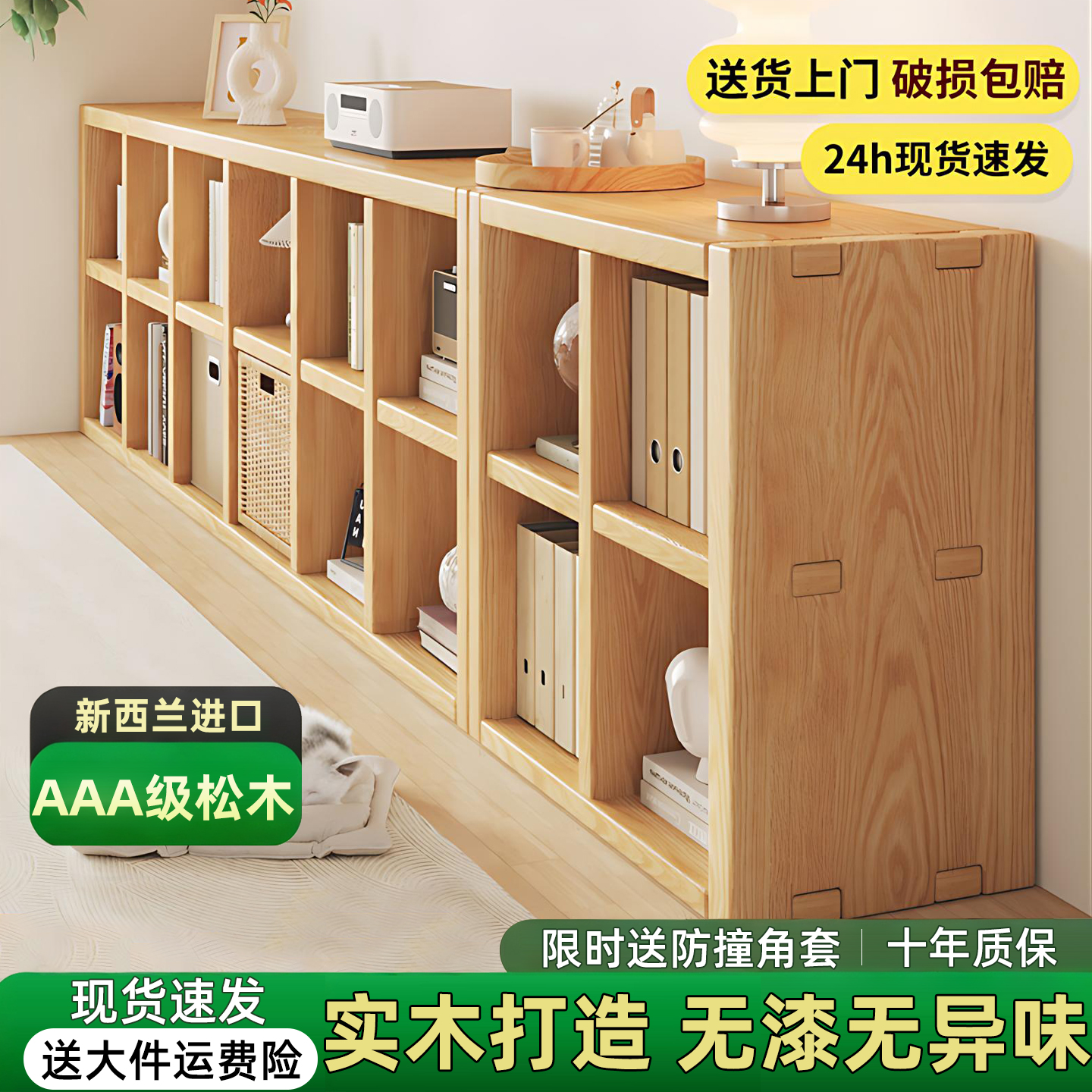 全实木书架置物架落地靠墙组合格子柜客厅松木储物收纳矮书柜多层