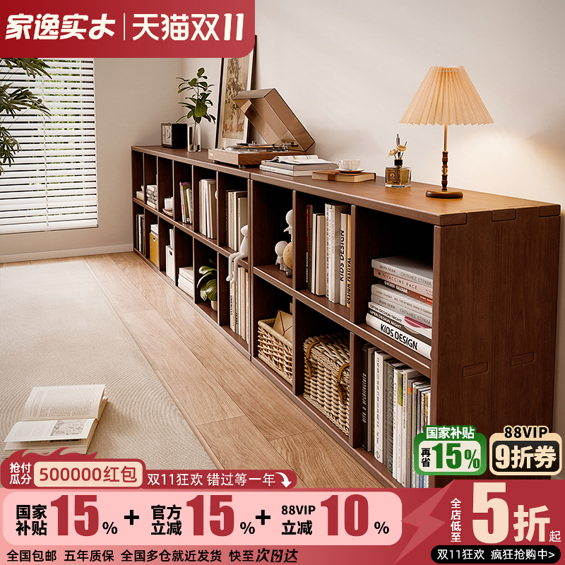 书架落地置物架客厅一体靠墙多层储物柜自由组合展示柜实木书柜子
