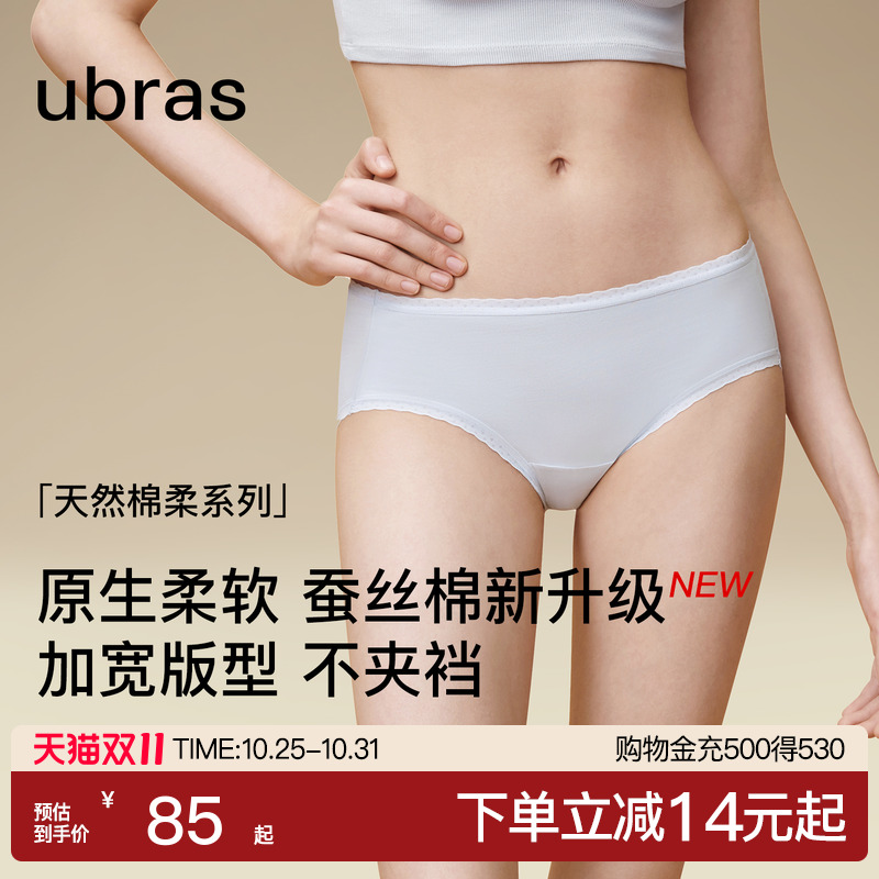 ubras60S纯棉内裤女士新疆蚕丝棉透气7A抗菌加长底裆中腰三角裤