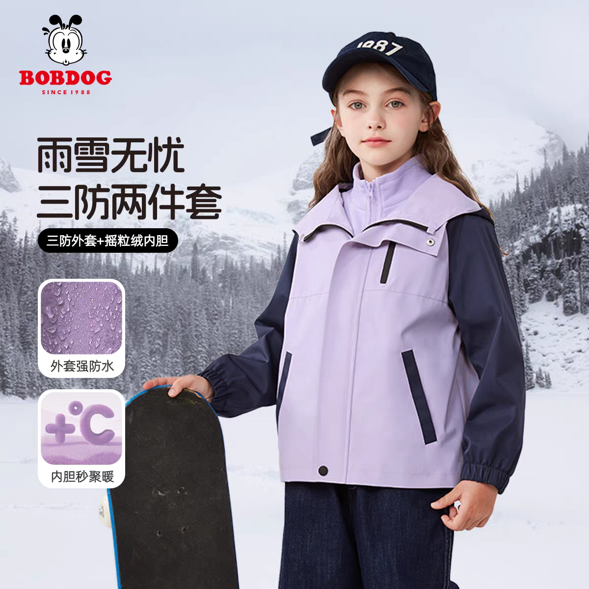 真维斯户外运动冲锋衣男女同款2025春秋款休闲夹克三合一加绒外套