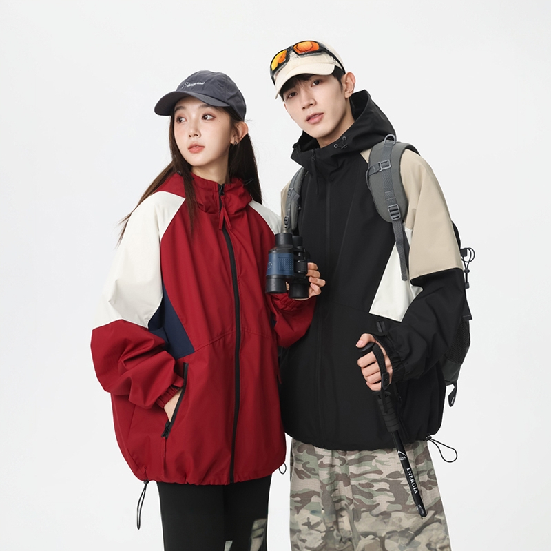 AIZRTO品牌冲锋衣时尚拼色连帽上衣男女情侣防风户外旅行登山夹克
