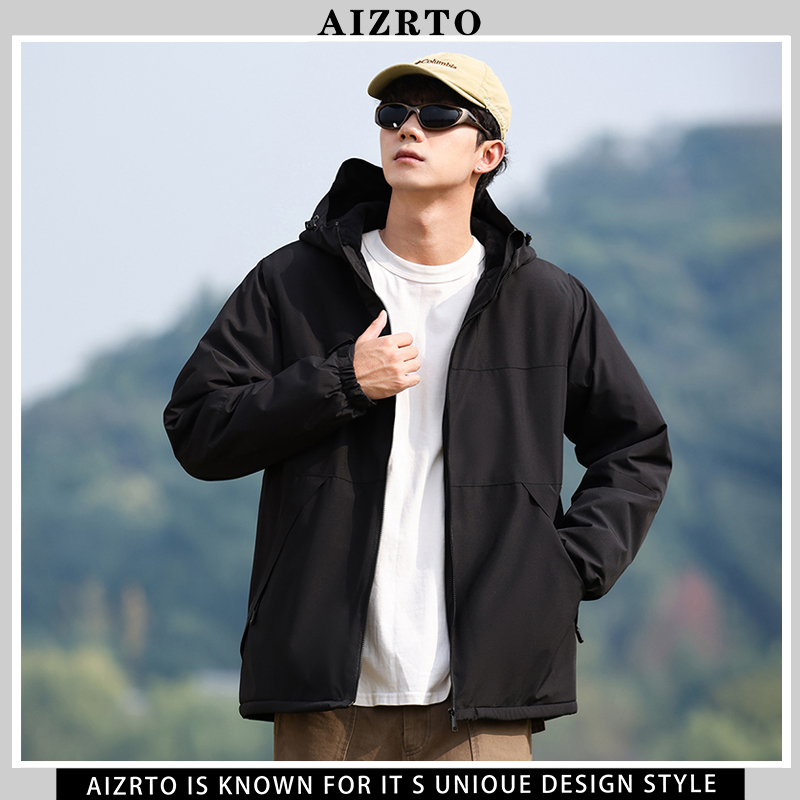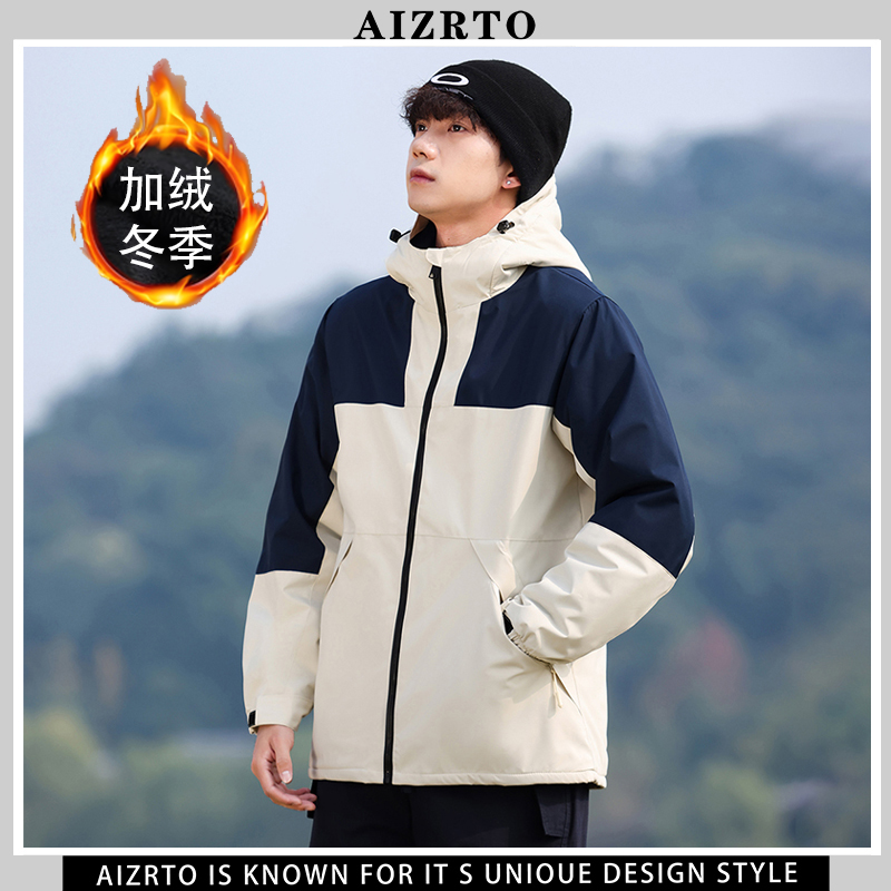 AIZRTO品牌冲锋衣外套男士潮牌连帽工装加绒户外防水防风登山夹克