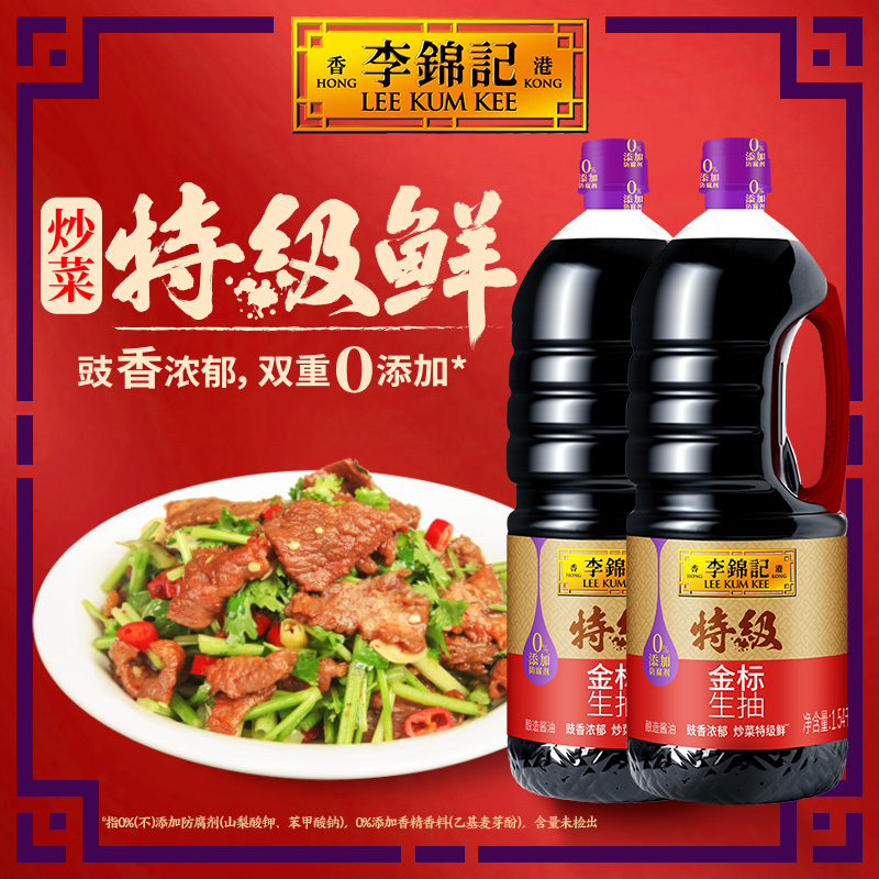 【淘宝秒Z】李锦记金标特级生抽1.54kg*2瓶家用酱油调味火锅蘸点