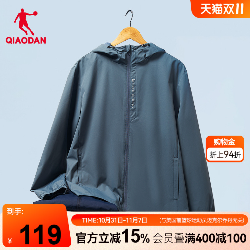 乔丹梭织外套男2025秋冬季新款运动连帽防泼水风衣外套网面内里