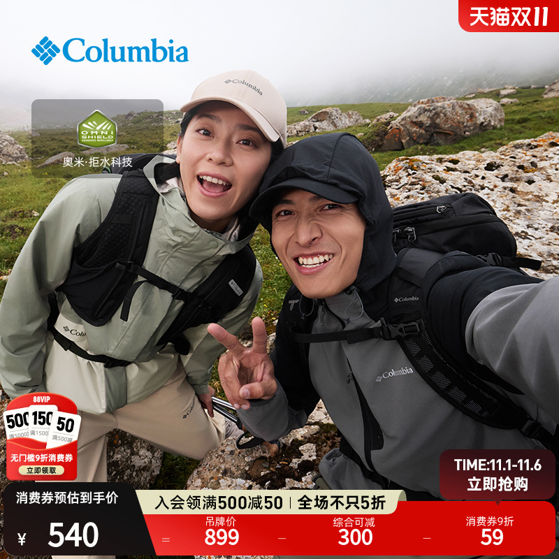 Columbia哥伦比亚户外男子拒水干爽软壳衣徒步运动连帽外套AE0015
