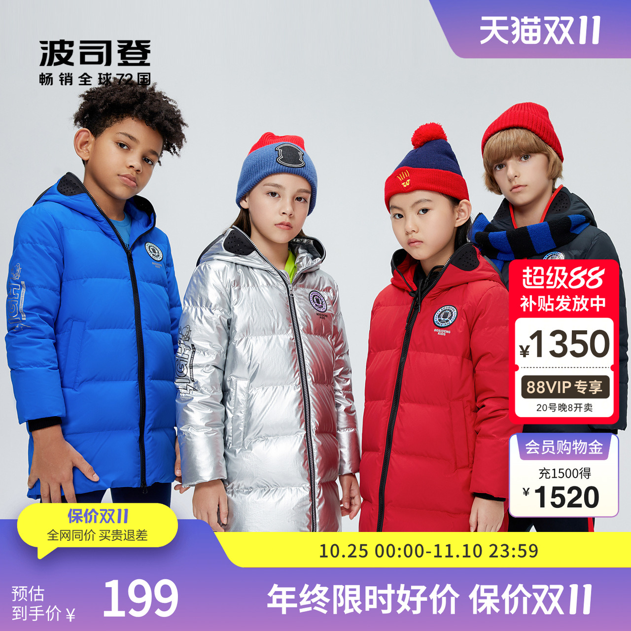 波司登2025新款长款儿童羽绒服男女童时尚运动连帽保暖运动外套