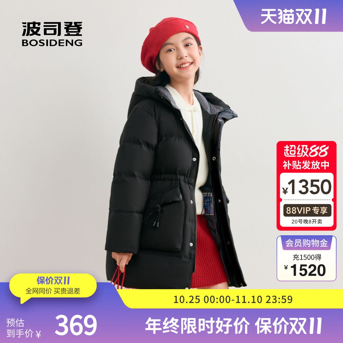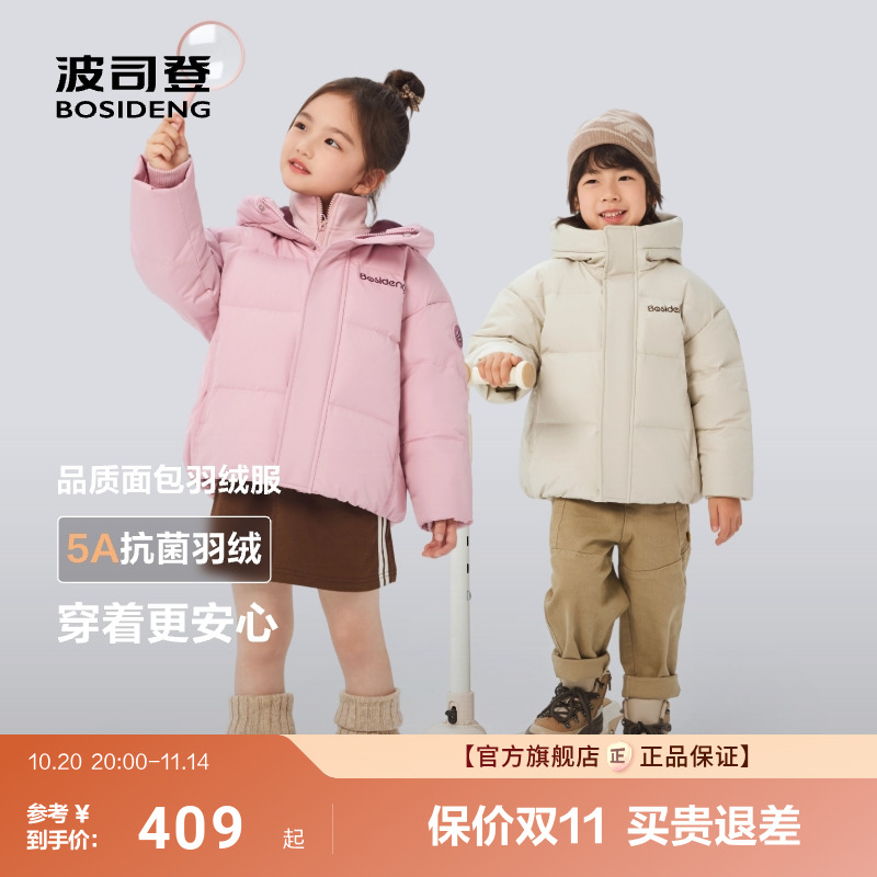 波司登奥莱2025新款冬男女童时尚运动连帽羽绒服中长款学院风保暖