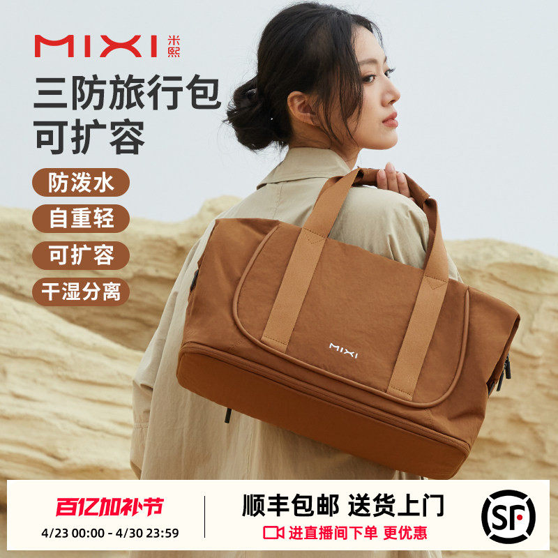 米熙大容量旅行包女轻便手提斜挎运动健身包短途旅游收纳行李袋男