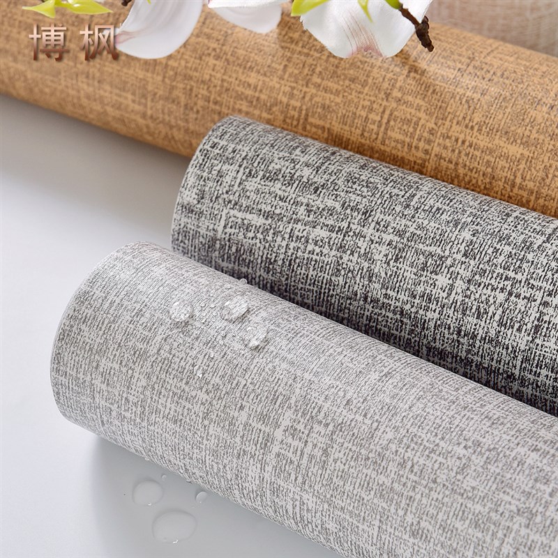 50米墙纸自粘防水防潮墙布3d立体墙贴壁纸客厅亚麻素色翻新墙贴纸