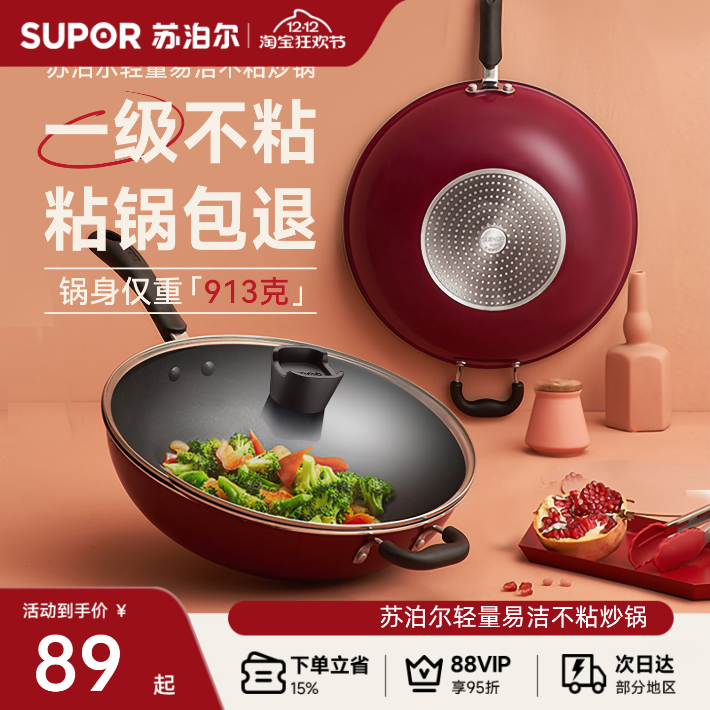 苏泊尔不粘锅炒锅家用炒菜锅电磁炉专用燃气煤气灶适用官方旗舰店