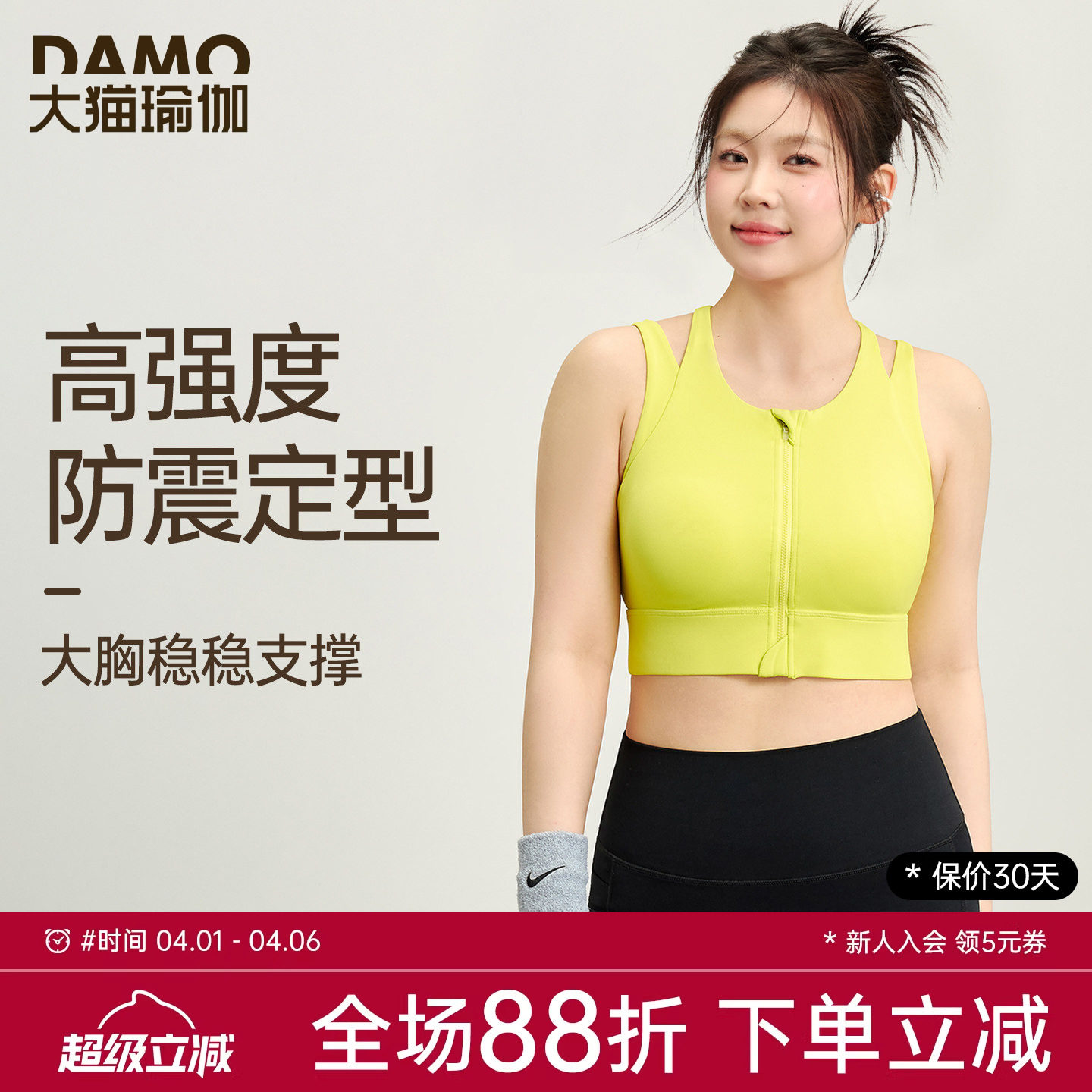 361运动内衣女防震高强度健身文胸跑步减震一体式前拉链瑜伽背心