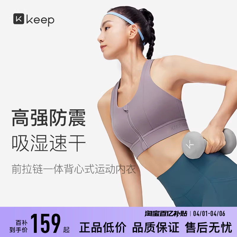 Keep运动内衣女跑步健身瑜伽高强度前拉链防震速干美背文胸背心